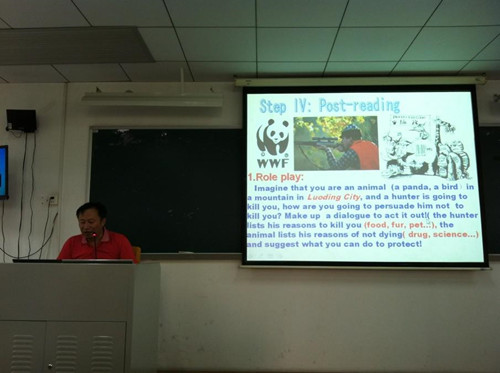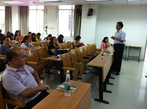 会后,来自广州市越秀外国语学校的李洪奇校长应邀为同学们作了题为“英语师范生的职业生涯规划”的报告。李校长以自身丰富的教学经验和先进的教学理念为广大实习生上了生动的一课。