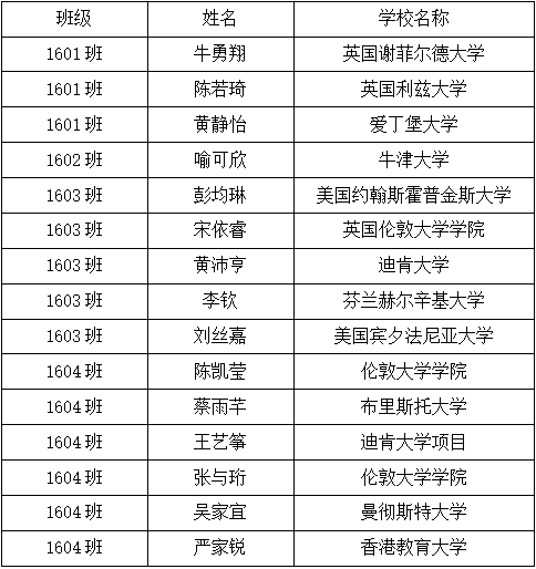 1929cc威尼斯本科毕业生境外留学深造的学校和人数分布如下: