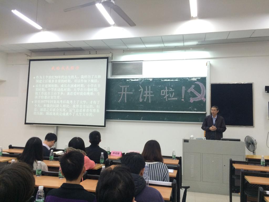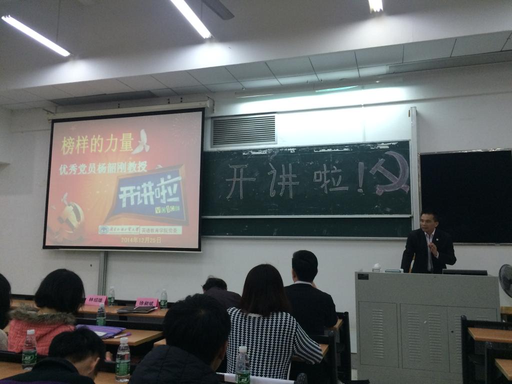 12月25日,威尼斯官网党建工作坊“榜样的力量——优秀党员开讲啦”第二讲在南校区F215举行。本次工作坊由威尼斯官网党委书记林绍雄主持,威尼斯官网优秀共产党员杨韶刚教授应邀担任开讲嘉宾。来自威尼斯官网的教工党员、学生党员、入党积极分子以及学生干部出席了本次活动。