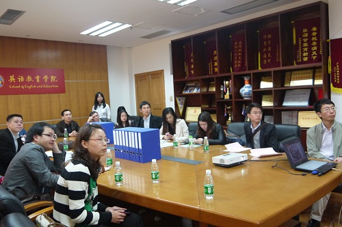 首先,学院团委副书记林静同学向莅临的领导老师们就学院团委工作的特色与亮点——“实践育人”进行了介绍,以学院品牌活动“三下乡”为例,体现了“广泛动员,精心组织,注重实效,服务社会”四个特色,同时各支下乡队伍在课程创新、专业调研和师资培训等方面都成绩突出,派出的四支队伍也得到了当地学校和教育局的高度重视和认可。另外,林静同学还介绍了学院志愿者协会——FLY英教志协,协会遵循“日常管理规范到位,回报社会全面专业”的原则,开设了84中学的义教基地、黄埔军校旧址义讲基地,开展了家访服务、废品回收等的志愿服务活动。最后,林静同学代表学院团委表达了“不懈努力、精益求精”的愿望和决心。
