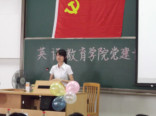 大会由党建协调活动小组09级的副组长胡雅婷主持。会议在庄严的国歌声中拉开帷幕。接着,主持人播放了由党建小组宣传部精心制作的小组简介相册。那一张张熟悉的照片勾起党建人过去一年留下的美好回忆,那一句句生动的介绍为在场的同学展示了一个务实团结的党建工作团队,让同学们更加了解小组的具体工作状况,为日后创建和谐的氛围奠定基础。