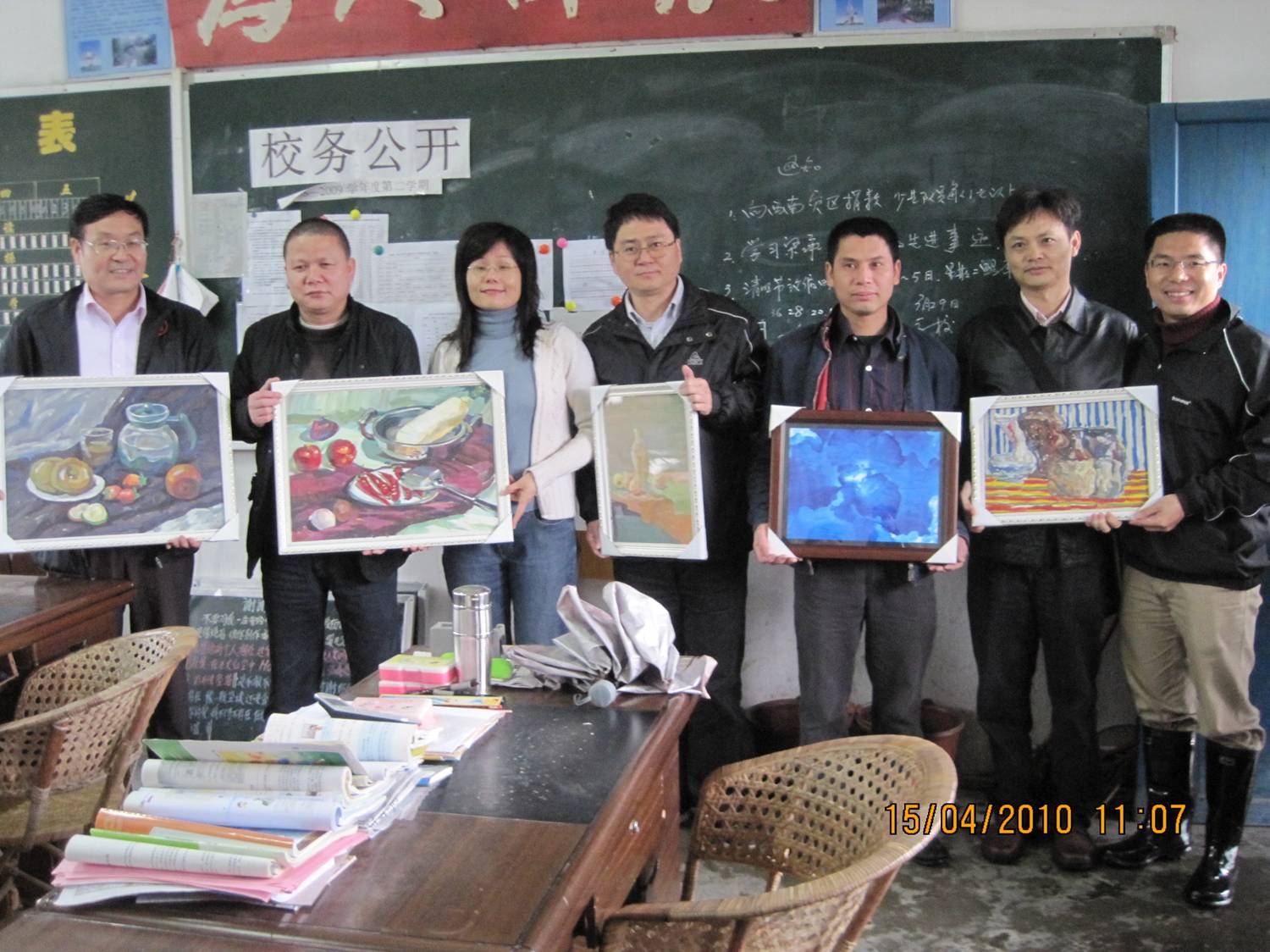1929cc威尼斯书记袁长青、副书记易宗勇和支部书记们实地察看了该村的学校建设、文化设施、村容村貌等情况,为当地的一所小学赠送了油画以资鼓励,并与该小学学生进行了短暂的交流。