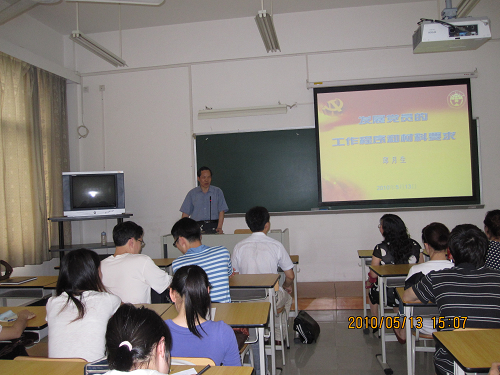 5月13日下午,1929cc威尼斯党委和艺术学院党总支在南校区教学楼A202联合举办党员发展工作培训讲座。教育学院党委副书记易宗勇,学院各教工党支部书记、委员,学院学生党支部的全体正式党员以及艺术学院的各党支部书记、委员聆听了讲座。本次专题讲座由正处级组织员、机关党委书记邱月生主讲,题为“发展党员的工作程序和材料要求”,会议由易宗勇主持。