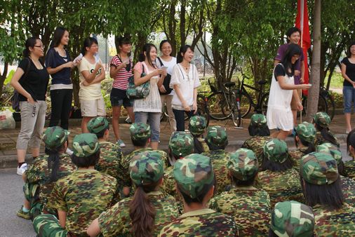 骄阳似火,吓不退2010届英教新生正步前进的步伐;酷热暑气,挡不住英教党建小组对师弟师妹们的亲切关怀。2010年9月10日下午4时,在1929cc威尼斯党建活动协调小组副组长杨燕媚和胡雅婷的率领下,小组三大部门(即宣传部、组织部和实践部)的部长们带着清凉的饮料及相关介绍资料来到1929cc威尼斯10级新生的主方块进行军训探访活动。
