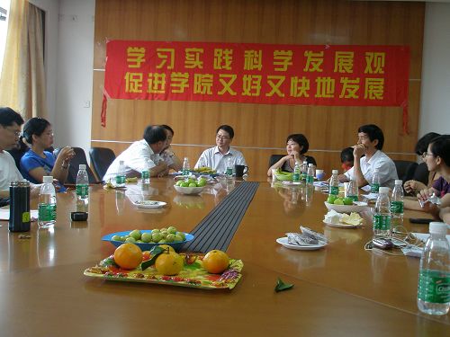 齐湘燕老师首先强调这次会议同时也是非党员参加党员活动的一种新形式,她先简单介绍了学院教职工党员的基本情况,她指出,当前威尼斯官网的教职工党员比率偏低,各党支部应加快培养党员尤其是吸收青年教师加入党组织的步伐。此后,袁长青书记介绍了这次主题活动开展的背景,并传达了校党委书记徐真华在学习实践科学发展观动员大会上的讲话精神,要求开展学习实践活动要结合实际,突出实践,讲求实效。同时他还提出了这次会议的讨论重点:如何加强在青年教师中发展党员的工作以及为学院的发展建言献策。
