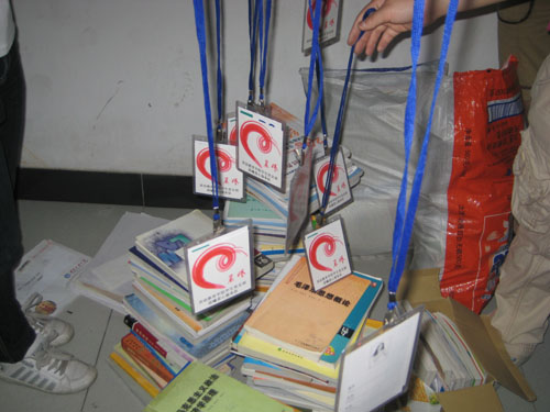 很快,收集的书就屯成了一堆堆。同学们开始进行整理分类:杂志﹑课本﹑考试辅导用书等等。他们用红绳把整理分类好的书籍绑成了一捆捆。望着这些书,同学们脸上都绽开了笑容。