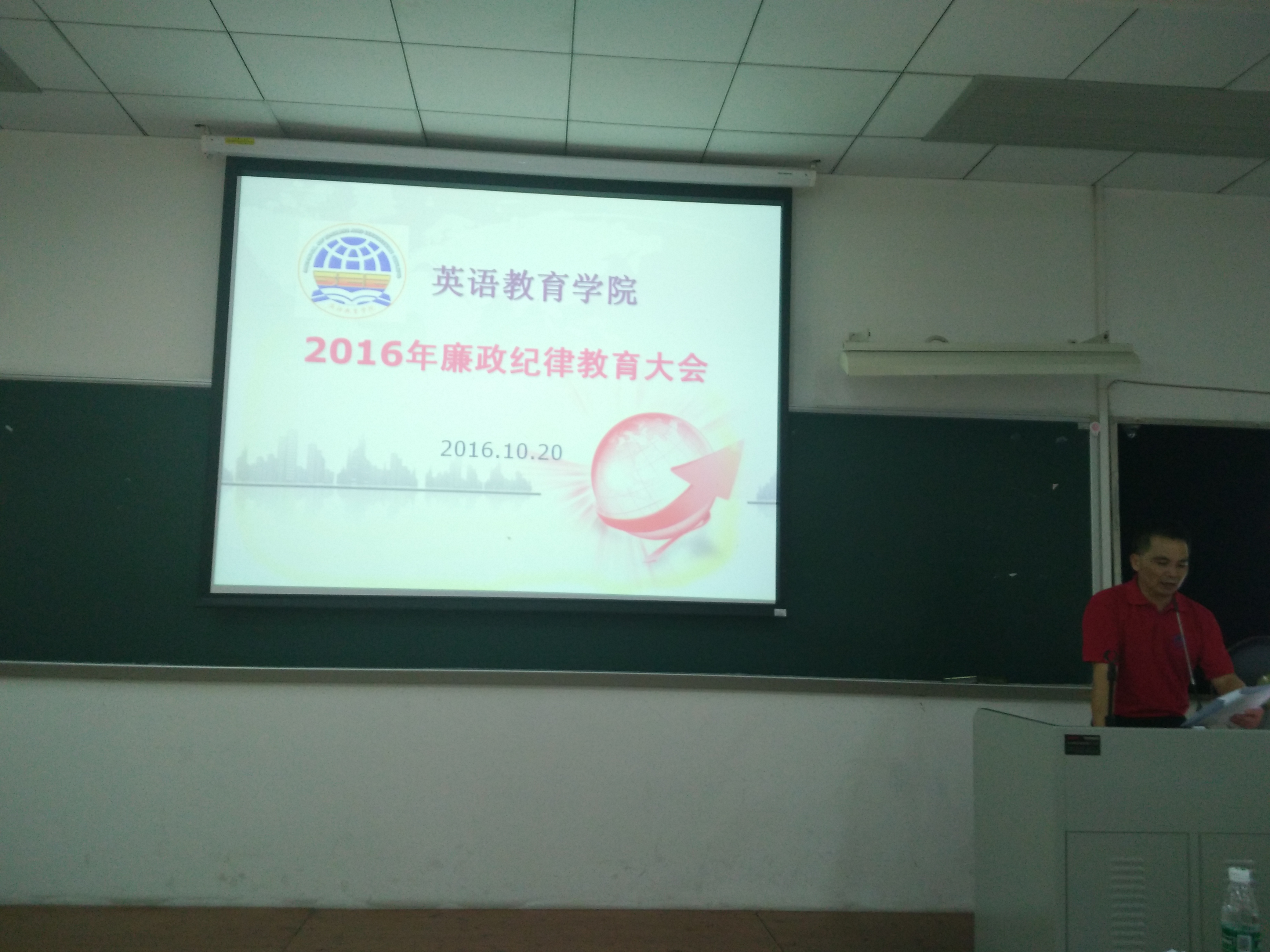 10月20日下午,威尼斯官网在教学楼G106召开全院党员师生学院“廉政纪律教育”学习月动员会,对全院党员师生进行纪律教育学习动员辅导并观看廉政教育片《陨落的新星,谭国锋》。全院师生和教育系学生党员、预备党员、入党积极分子和各年级班长团支书参加了此次活动。