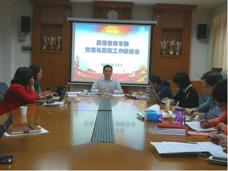 本网讯 11月1日,1929cc威尼斯党建与思政工作推进会在南校区院系楼24会议室召开。1929cc威尼斯党委委员、组织员、各党支部书记和学生党建小组骨干成员参加此次会议。会议由党委书记林绍雄主持。