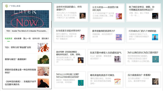 2018年9月创办至今,林老师和广外大学生创新训练团队共创的公众号“广外慧心英语”已有2000多人关注,推送近200篇,好评不断。前教育部外语教学指导委员会副委员长、中山大学夏纪梅教授评论以下推送“很有现代范,对口大学生需求,是非常好的教学创意”,“选材立意阐释呈现都设计精到,well done!”