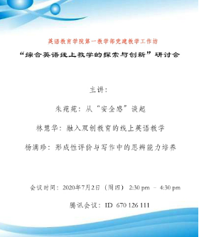 【党建工作坊】庆“党日”、促教研:英教“综合英语线上教学探索与创新”研讨会
