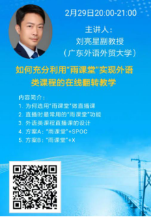 2月29日晚,刘亮星老师受“粤港澳大湾区高校在线开放课程联盟”的邀请,为大湾区及其他城市的高校英语教师做了主题为“如何充分利用‘雨课堂’实现外语类课程的在线翻转课堂教学”的线上公益网络直播讲座。为了惠及更多教师,刘亮星和他的团队还建设了QQ交流群,为学员们答疑解惑。他表示,“我很荣幸能帮助大家,这是我作为一名共产党员、一名大学教师应有的担当。”
