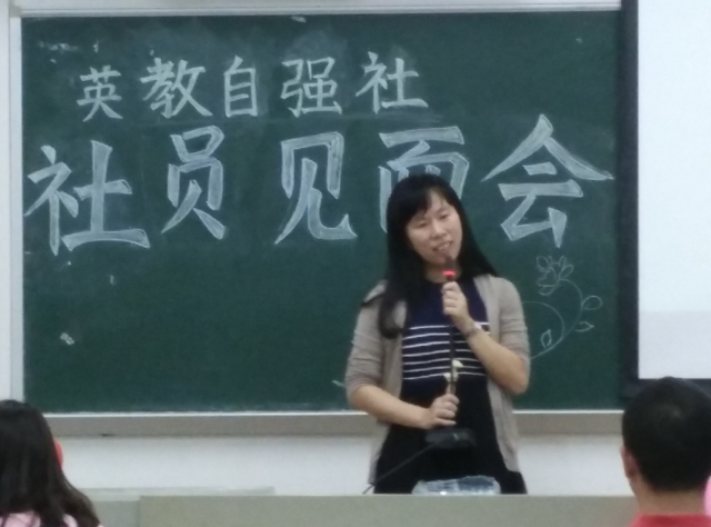 在林泽龙老师亲切的发言后,英教自强社指导老师迟殿凤也进行了致辞。在致辞中,迟老师首先表达了对到场嘉宾与同学的欢迎,然后分享了在指导英教自强社工作过程中的体会与感受。迟老师希望英教自强社能够成为社员们另一个家,把自强社“传递社会关爱,锻造自强之才”的理念传承下去,同时鼓励英教自强社的全体成员一起努力,争取在自强社的历史上留下浓重的一笔。迟老师在致辞的最后也送上对新长城广外自强社成立十周年的真挚祝福。