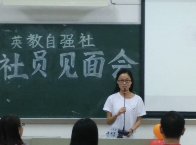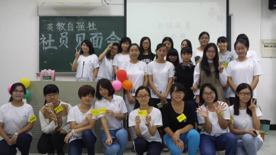 2015年11月15号的晚上19点,广东外语外贸大学1929cc威尼斯在南教学楼A404举行了一年一度的社员见面会。莅临本次见面会的嘉宾有1929cc威尼斯团委书记林泽龙,英教自强社指导老师迟殿凤,新长城广外自强社社长黎荣霞,新长城广外自强社副社长周绮,新长城广外自强社副社长陈伟颖,新长城广外自强社社员部部长张淑颖以及英教自强社社长王丽玲。