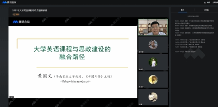 黄国文教授作“大学英语课程与思政建设的融合路径”主旨报告