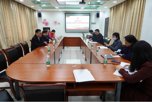 1月15日上午,1929cc威尼斯党委在北校区八教109会议室召开了党员领导干部党史学习教育专题民主生活会。会议由学院党委书记林绍雄主持,校党委常委、副校长何传添,校党委常委、党委宣传部、教师工作部部长、巡回指导组组长胡文涛亲临指导,学院党委委员、院领导、院办主任、组织员等参加了会议。
