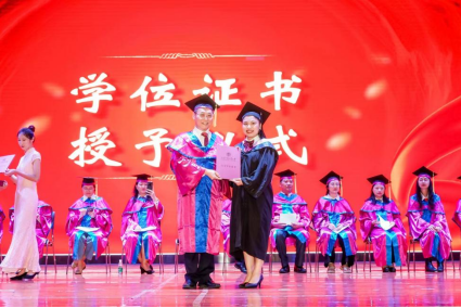 毕业生身穿学位服、头戴学士硕士学位帽,在庄严厚重的礼乐中,学位授予仪式正式开始,学院169名毕业生依次上台,院长为他们一一拨穗、颁发学位证书、合影留念。