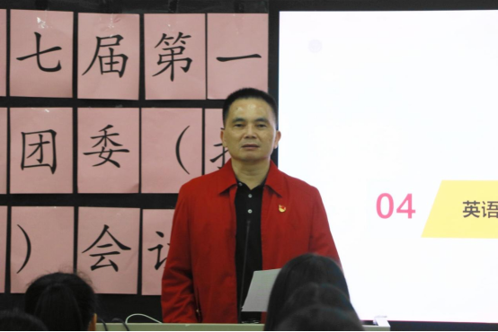 学院学生会执行主席何梓锌汇报团委学生会过去一年的工作,就思想引领、社会实践、宣传沟通、文体活动、学术竞赛、以及权益服务六个方面,分享英教团学一年来的主要工作与成就,同时对下一届团委学生会提出期望:一是以服务广大同学为宗旨,保障同学的切身利益;二是切实抓好自身组织建设,积极发挥学生能动作用;三是锐意进取,大胆创新,奋斗铸就事业,创新开辟未来。