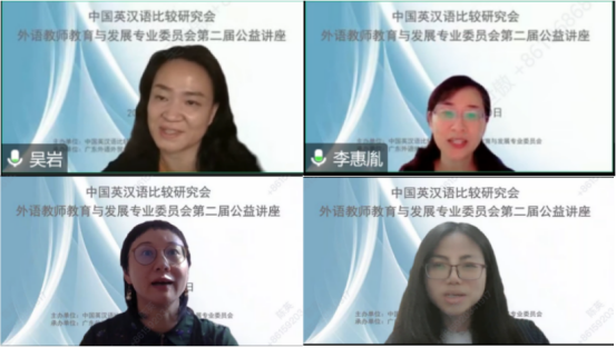 2022年11月20日,由中国英汉语比较研究会外语教师教育与发展专业委员会主办、广东外语外贸大学1929cc威尼斯承办的第二届“外语教师教育与发展系列公益讲座” 通过腾讯会议线上平台成功举办。本次公益讲座旨在促进我国外语学科发展,为广大外语教师、教育工作者和教师教育研究者提供学术交流平台,不断提升我国外语教师教育与发展研究水平。系列讲座分别由北京外国语大学杨鲁新教授、广东外语外贸大学董金伟教授、上海外国语大学王雪梅教授、辽宁大学刘熠教授主讲。中国英汉语比较研究会外语教师教育与发展专业委员会主任王蔷教授和副主任欧阳护华教授、张莲教授等二十余位常务理事云端出席,400余名外语教师、学者和研究生参会学习。