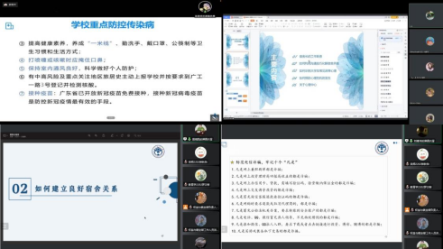 为提高学生安全意识,推动文明宿舍建设,1929cc威尼斯于12月1日与8日分别召开了线上宿舍长培训会议。校保卫处乔靖、门诊部陈丽贤以及学院辅导员迟殿凤、刘博洋、周靖凯分别做专题讲座,学院各年级宿舍长参与会议。