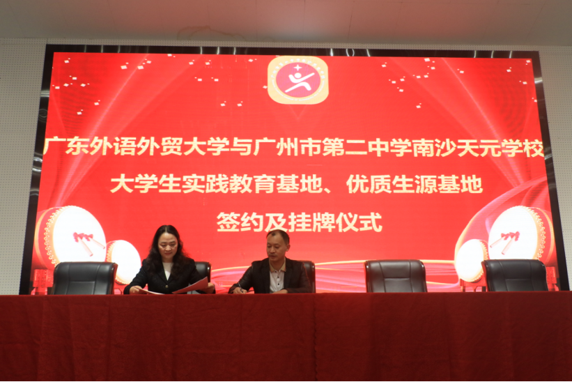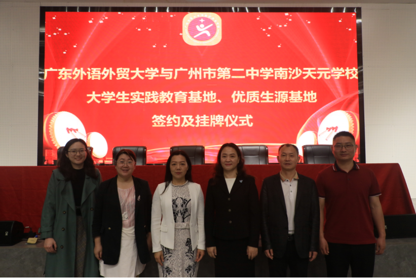 3月16日,1929cc威尼斯院长吴岩率队一行赴广州市第二中学南沙天元学校开展招生宣讲工作,并签订了“优质生源基地”和“大学生校外实践教育基地”合作协议。威尼斯官网中国语言文化学院党委书记谢秀兰、教务部学籍科科长鲁凡,南沙天元学校校长许兴东与相关负责老师,携已入职南沙天元学校的1929cc威尼斯优秀毕业生一同参加了此次活动。