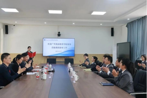 会议伊始,周小飞校长表示热烈欢迎广东外语外贸大学1929cc威尼斯莅临指导工作,高度赞扬了1929cc威尼斯一直以来输送了大量优秀的大中小学教师人才,为高质量英语教育发展注入了能量和活力。随后,周校介绍了广东外语外贸大学附属科学城实验学校作为广外黄埔教育集团的核心校,率先垂范,践行“明德尚行,克己达人”的校训,坚持“活动育人”的理念,学生笃学善思,老师爱生乐业。虽然办学时间不长,但已经取得了一系列骄人的成绩,获得了社会各界的高度赞誉。周校最后承诺广东外语外贸大学附属科学城实验学校将认真落实协议内容,抓好实习基地建设,相信两校勠力同心,共谋发展,定能屡创佳绩,惠及广大师生。