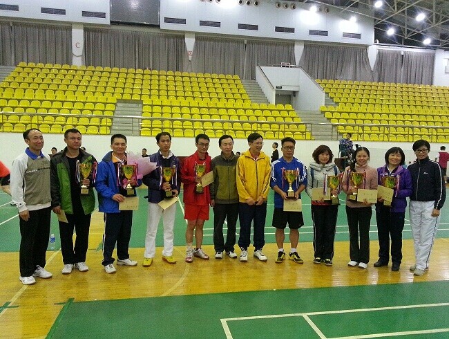 经过13、14日周末两天激战,在北校原财院体育馆举行的2014年广外大教职工羽毛球大赛落下帷幕,只派出二线队伍参赛的外校仍然夺取女单、女双和男双三项冠军,以团体总分41分成为最大赢家,冠军地位无可撼动(注:外校自2008年首次参赛以来便创造逢参赛必夺冠的记录)。威尼斯官网羽毛球队凭借混双和女单的出色发挥,以高出8.5分的优势超越去年第二名的继教公开学院创纪录地获得团体亚军(威尼斯官网总分26.5分,继教总分18分)。跨工会组合张德成/刘芹力挫外校组合夺得混双冠军,陈水仙则同样在女单决赛中遭遇外校遗憾落败屈居亚军,而临时组合林绍雄/徐敏在混双比赛中有惊无险地取得第三名。团体总分第四至第八名分别为体育部、东语学院、南国商学院、经贸学院和信息学院。