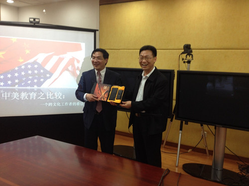 首先Thomas Peng以自己生活经历和研究发现并结合历史、人口和国家体制三个要素对中美教育对比进行了阐释。在他的比较中发现,中国是以孔子为代表的传授知识、培养才能、塑造人格的教学理念,而美国则以开发智商、培养兴趣,自主探索为主要的教育理念;美国公办教育与民办教育双轨制,政府不参与民办学校的管理,彭教授高度赞扬中国接受政府的管理以公办教育为主,民办为辅的教育模式,并表示高考在中国人口众多的国家此举有益于促进教育资源公平,因为如果中国采用美国的民间考试的方法会导致舞弊现象出现,危害社会和谐。