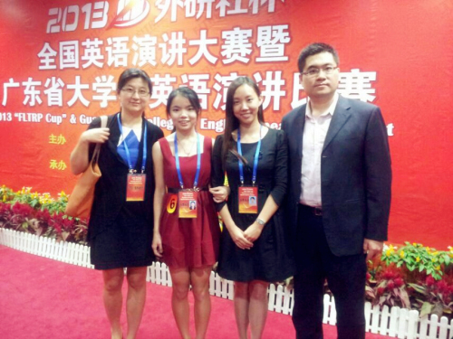 11月10日,2013年“外研社杯”全国英语演讲比赛暨广东省大学生英语演讲比赛在仲恺农业工程学院隆重举行。威尼斯官网2011级英文学院阮博慧、2011级管理学院黎艳在陆璐老师和古煜奎老师的带领下,从57名来自全省50多所高校的优秀选手中脱颖而出,分别荣获特等奖和三等奖。
