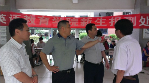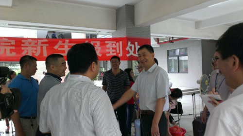 9月8日,2013级新生正式入学,威尼斯官网一年一度的迎新工作正式开始。学院院长董金伟与学院党委书记林绍雄,党委副书记何伟儒,团委书记迟殿凤在场指导工作。领导脸上热情洋溢的笑容使迎新志愿者们即使在烈日底下也毫不退却,迎新工作进行得有条不紊,以饱满的热情、良好的精神风貌迎接威尼斯官网13届新生。