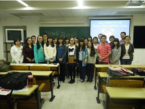 11月21日晚6点半到8点,1929cc威尼斯第三教学部在南校区教学楼举办了新闻英语单词拼写大赛(News Spelling Bee Final)。来自12级全英班的17名选手参加了比赛。作为大学本科教育质量月的特色活动,比赛得到了学院和教学部领导、以及同事和学生志愿者的大力支持。教师和学生的共同参与活跃了现场的气氛,度过了一段美好的时光。副院长肖建芳博士、第三教学部主任陈金诗博士、朱其韵老师和张骏宇老师出席和参与了活动。
