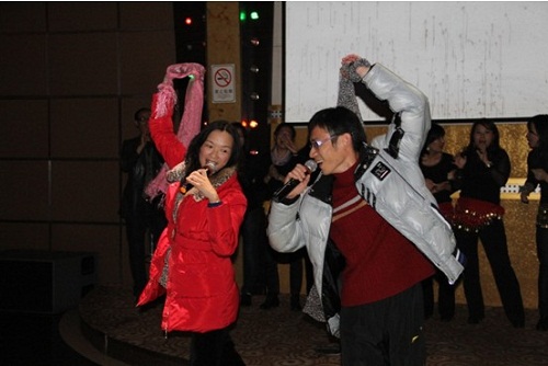 晚会在全体院领导《同一首歌》的合唱中拉开帷幕,院领导在董金伟院长、林绍雄书记充满激情的演唱带领下,个个发挥得淋漓尽致,让我们充分地感受到学院班子成员团结向上、和谐幸福的良好集体;外教Bob的鼓乐掀起了全场教师的掌声及群舞的热情;张德成、朱三毛两位老师《花好月圆》的情歌对唱,让我们一下子回到了那个难忘的年代;余灼雅老师的《晚秋》,深情、稳重、优美;杨义豪老师的《飞扬的青春》和他那太空舞步,体现了他的投入和认真;苏春老师优美的《印象侗寨》,让我们不会怀疑她是不是侗族人;第三教学部《年轻朋友来相会》让我们回到了那个上山下乡的知青年代;第一教学部的女声小组唱《红梅花开》、第四教学部的男生小组唱《爱江山更爱美人》让我们感受到了女性的柔美及男性的豪情。最为精彩的是教育系的《贺新年三句半》及第二教学部的《high歌热舞》,把整个晚会带上了高潮,教育系的《贺新年三句半》,每一个参与者都作了精心的准备,浓缩了学院2012年耀眼的成果及当今网络红人热语,配以独特的道具,精彩的语言及动作让全场捧腹大笑;第二教学部《high歌热舞》再一次令在场的观众汗颜,他们剪辑了富有中国元素和现代歌舞的精彩片段,通过各自特长,用歌舞演艺出来,很有专业歌剧的味道,让我们怀疑他们是教书的还是干演员的,感谢他们奉献这样一个精彩的演出。
