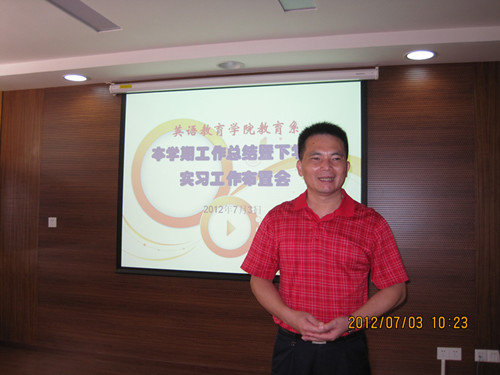 紧跟着,柯晓玲主任对教育系本学期工作做了总结发言,对本学期的主要工作成绩进行回顾,并对下学期的主要工作思路和学生实习安排与在座老师进行深入地磋商,就如何加强师生互动、如何进一步加强毕业论文指导工作、如何加强实习指导工作等方面广泛征求意见,并取得一系列的共识。肖建芳副院长就科研工作进行了简单回顾,号召教师们紧抓时机,积极参加学校校级科研课题申报工作,并利用暑假抓紧申报科研课题的准备工作和论文撰写工作。