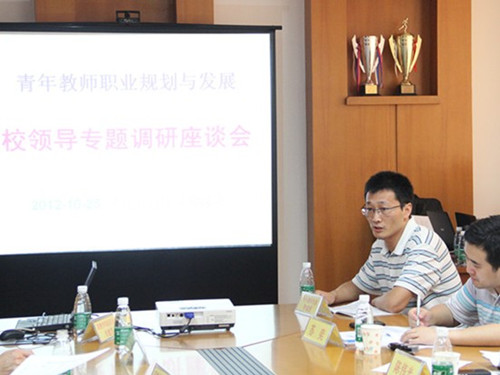 接着,其他几位青年教师从不同侧面分享了自己的职业成长经历。在座校领导对他们提出的问题作出直接回应,如对科研数据库的创建讨论,学院出国培训的最佳人数规模拟定,教学贡献与职称的协调关系等等问题。