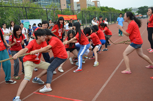 最后进行的是一年一度选拔赛的重头戏——大一拔河比赛,大一四个班级先分为一二班和三四班两组进行比拼,三局两胜,决出胜利的两个班级再进行比拼。一二班的双方选手各就各位,观赛学生屏气凝神,等待着那声哨响,比赛随即展开,顿时全场沸腾,两方的选手都咬着牙,倾尽全力坚守着阵地,不让麻绳中间的红缎带进入对方的领地,比赛局面僵持着,双方两队各不相让的加油声把气氛推到全场最高潮,经过三轮的激烈角逐,最后1203班以强劲的势头夺取了最终的胜利,在这样的时刻,无论输赢,都已不再重要。因为他们的努力和团结早已成了最美好的回忆,他们都是当之无愧的无冕之王。