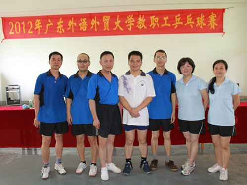 本次比赛云集了全校众多的乒乓高手,威尼斯官网能组队参赛并小组出线实属不易。参赛队员包括卓勇光、崔华、曾国华、高永新、张燕、胡青球、齐湘燕七位老师,其中卓勇光、崔华、曾国华、齐湘燕都住在番禺,一大早就起床开车赶到北校区,一直奋力拼搏比赛至下午四点多钟,充分体现了强烈的集体荣誉感和对运动的热爱。可惜的是队员们看不到学院的同事们前来助威,但令他们感动的是林绍雄书记从早到晚一直陪着大家,为他们忙前忙后,做好比赛鼓劲和后勤服务等工作;霍海洪院长、肖建芳副院长在参加排舞训练的间隙专门来到球场,关注着比赛,为大家加油;周小薇副主席也到场指导并为大家安排午餐。有领导们的关心和支持,队员们认为再苦再累也是值得的。