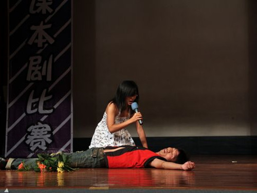 接下来,五支来自不同学院的队伍将课本剧搬上舞台,为现场观众带来一场名副其实的课本剧之夜。经贸学院队伍上演的的《Pride and Prejudice》,众多美女靓男登场,恰当好处的情感表达、经典的告白与拒绝以及的圆满的结局都为这支队伍加分不少。法学院队伍的课本剧以“love”为主线,描绘了一场三人之间的爱情悲剧,悲情中又带一些诙谐,笑声过后带给人的是深思与自省。来自中文学院、管理学院和财经学院的三支队伍选取的是同一个剧目中同一段场景,这无疑为他们的表演带来了不小的难度。而令人惊喜的是,尽管选材相同,他们的演绎却不尽相同。每支队伍都在表演中加入了自己的理解与创意,可谓是亮点十足。中文学院的队伍服装、氛围到位,场面宏大,事先准备好的录音播放使表演过程更加流畅;管理学院大胆地在原剧本上加入最近热门的《泰坦尼克号》的元素,导演也在台上大秀了一把天籁般的歌喉,惊艳全场;财经学院则以出色的演技见长,用丰富自然的表情动作引人入胜。