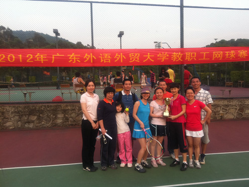 4月21日,艳阳高照,威尼斯官网网球健儿在北校区举行的2012广外大教工网球比赛中一路高歌,经过一整天的顽强拼搏,喜获佳绩,以总分34分的总成绩名列全校第二(体育部总分第一)。宁大利、周敏女双组合荣获女子双打亚军(体育部选手夺得冠军)。