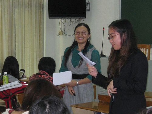 朱秀全老师的公开课充分体现了“以学生为中心”的教学理念,主要由教师引导、调动学生积极投入各种学习活动,从快速浏览(Skimming)到整篇阅读(Global reading)再到详读(Detailed reading),朱老师设计了不同的活动和练习,使学生通过主动学习对一篇课文逐步加深理解,既学到了语言知识,提高了英语运用技能,又加深了对文章的整体理解和内涵提升,还贯穿了中西文化的比较与透视,可以说整堂课精彩纷呈,高潮迭起,给人留下深刻印象,受到来访同行的高度称赞。