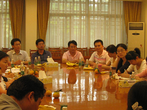 随后的座谈会由英教学院副院长董金伟主持,院长霍海洪、党委书记林绍雄及各教学部主任和部分骨干教师出席了座谈会。霍海洪首先代表学院对冯副院长一行的来访表示热烈欢迎,对华南农大和威尼斯官网今年双双荣获“教育部大学英语改革示范点”表示由衷祝贺。霍海洪介绍了英教学院近年来进行大学英语教学改革的探索与实践,尤其是威尼斯官网“分级教学,分类指导”的大学英语教学指导理念,确立“大学英语教学是1929cc威尼斯的根本立足点,教育学专业是学院的发展增长点”的指导思想,使威尼斯官网的大学英语教学朝着更加国际化、校本化、个性化、立体化、人性化的方向不断迈进。在威尼斯官网大学英语教学改革所取得的阶段性成果中,霍海洪主要谈到,威尼斯官网“大学英语系列课程”被评为2011年广东省精品课程、威尼斯官网成为全国外语院校大学外语教学协作会副会长单位、威尼斯官网成为全国高等师范院校英语教学研究协作组广东省组长单位、以及威尼斯官网青年教师曾丹在第二届“外教社杯”全国大学英语教学大赛总决赛中荣获第二名的优异成绩等。冯立新副院长也向广外的同行们通报了华南农大大学英语教学改革的情况及教改进程。华农外语学院大学英语部主任郭润玉和威尼斯官网第一教学部主任郭进军、专业英语教学部主任杨小婉以及网络视听说教学部主任陈金诗分别从分级教学、网络自主学习、专业英语教学和网络视听说课程等方面介绍了各自的情况、做法、特色及优势,双方进行了富有成效的交流。随后威尼斯官网朱秀全老师畅谈了其公开课的设计理念;曾丹老师向与会者分享了其参加大学英语教学大赛全国总决赛备战经历和获奖心得。双方就大学英语教学改革展开了多方面的研讨。最后林绍雄做了简短、热情的总结发言,充分肯定了此次研讨交流活动的意义。交流活动在友好、融洽、共同探讨、相互学习的气氛中结束。