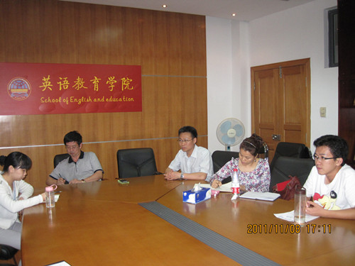 在霍院长一番话的鼓励下,十三位同学敞开心扉,畅所欲言。同学们轮流发言,交流了自己上英语课的感受,对自己的任课老师做出了中肯的评价。他们纷纷表示老师们上课富有激情,课堂气氛活跃。老师们多元化的教学手段,良好的师生关系使他们都爱上英语课。老师们对教学认真负责的态度,精深博大的专业素养也获得同学的一致称赞。同时,同学们也尖锐的指出英语课堂存在的一些问题。比如各种各样有趣的课堂活动虽然调动了课堂气氛,但难以进行有效的课堂控制。来自及艺术学院的学生代表提到,艺术学院的学生个性不受拘束,一旦展开小组讨论便无法收场,以至于老师大部分课堂时间用于维持课堂纪律。有的同学提出课堂的主题讨论深度不够,应该进一步的提升到人文主义的高度去挖掘更深的内涵;有些同学希望老师少用PPT,与学生进行更主动的思想上的交流;也有同学提出在英语课堂上学习的应该不仅仅是语言,更多的是文化。其他同学还反映Presentation做得过多,流于形式,帮助不大。