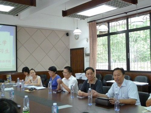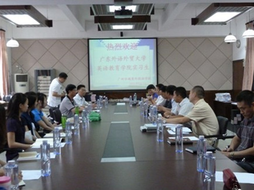 越秀外校的石远习校长、党总支书记杨建伟、副校长李洪奇、陈晓莲、严永铭以及教导处主任李志飞和英语科组长杨师民等10多位领导、老师在会议室接待了威尼斯官网实习队伍,李洪奇副校长主持见面会。