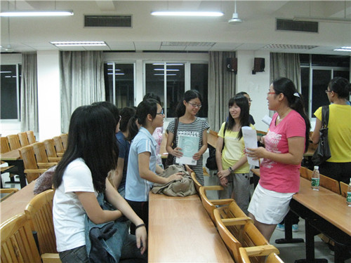 接下来进行了“为中华而教”梅州丰顺队培训。首先,霍院长对梅州三下乡工作进行了总指挥和总协调。他为大家介绍了梅州丰顺支教的项目背景和主要任务,指出本次三下乡活动不仅是一个服务社会的契机,也为老师和同学们提供了教学实习的好机会,更有利于提高当地的中小学英语教学水平。他动员大家响应“为中华而教”的号召,热情投身,快乐奉献。霍院长尤其强调了教学特色的问题,他鼓励老师和同学们在教学实践中贯彻“个性化”“校本化”和“快乐学习”的原则,合理运用“1+5”教学模式和诊断式的个别指导,根据实际情况灵活调整教学方法,寓学于乐。最后,霍院长为大家讲述了八条三下乡期间的注意事项,谆谆教导使在场师生获益匪浅。