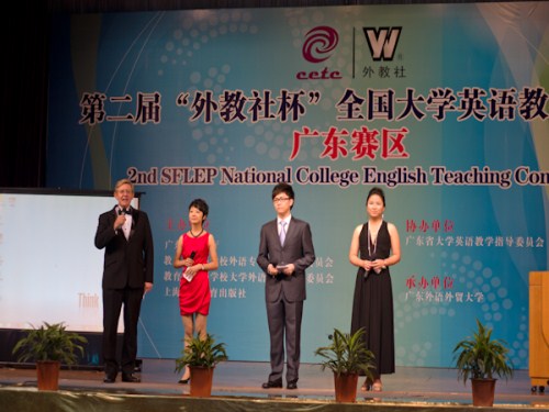 5月21日,第二届“外教社杯”全国大学英语教学大赛广东赛区决赛在广东外语外贸大学南校区学术报告厅举行。此次比赛由广东省教育厅、教育部高等学校外语专业教学指导委员会、教育部高等学校大学外语教学指导委员会、上海外语教育出版社主办,广东省大学英语教学指导委员会协办,广东外语外贸大学承办。比赛设立综合课、听说课两个组别,分别在上午和下午进行。