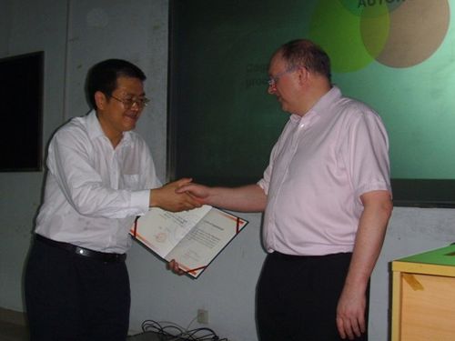 教授的讲座有一个特别之处,就是在演讲到一半的时候设置一个小的问答环节。同学们和老师的参与热情很高,教授也详细具体地回答了同学们和老师的问题。问答环节后,周富强院长为Benson教授颁发了威尼斯官网的正式聘请书和镶有孔子全身像的纪念品并合照留念,这表示他正式受邀成为威尼斯官网长期客座教授。