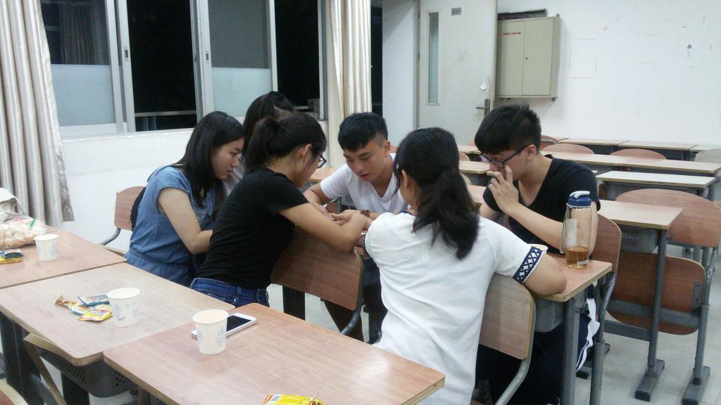 傍晚六点半左右,待新生安顿好后,各班班导组织新生开展大学的第一次班会。对于很多新生而言,新同学并不陌生,这都得益于前期迎新工作的准备,包括创立新生级群、班群、“一对多”策略等,让新生在暑假期间彼此熟悉,了解英教。因此,班会的气氛也相当热烈,丰富的游戏不仅让新生“各显身手”,更重要的是拉近了彼此的距离。