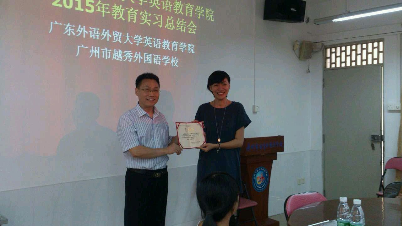 10月27日下午,广州市越秀外国语学校为广东外语外贸大学1929cc威尼斯的六名实习生举办了2015年教育实习总结会暨欢送会。威尼斯官网董金伟院长、刘会英主任,越秀外国语学校李洪奇校长和几位副校长、主任以及指导老师出席了该实习总结会。