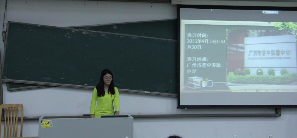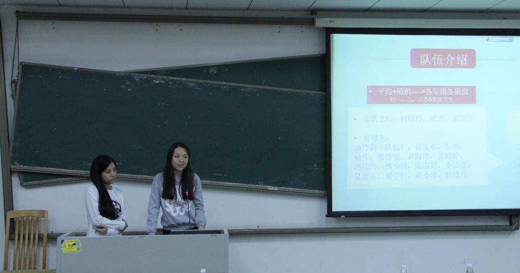 除此之外,2012级实习学生代表还强调了在实习过程中,若想成为一名合格的英语老师,除了要不断加强自己的英语技能,还要真正做到敢负责任,关爱学生。在对各实习点情况的详细介绍中,教育实习学生代表们都根据自己的经验对2013级学生提出关于实习方面的建议,如要学会把握机会、不推辞杂事小事、因材施教等。
