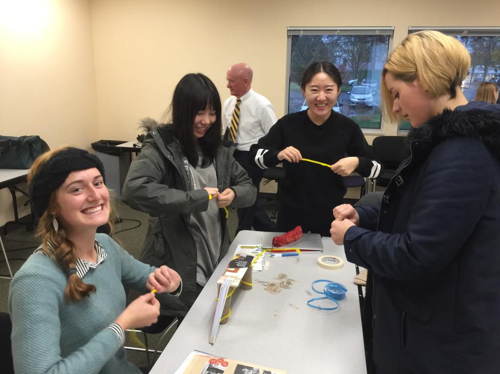 除了听课,乔治还特别联系了当地的小学开展中文俱乐部,让我们在当地的小学教学中文。第一节课我就被美国孩子的活泼给震惊了。当说到某些让他们感兴趣的话题时,他们就会高高地举起手想要发表他们的看法。他们很活泼但也很遵守纪律,发表意见前一定是先举手。而我在教学中学到最多的就是各种各样能激发学生学习兴趣的活动。美国注重“在做中学”(没错,就是杜威的learning by doing)。所以老师会采用不同类型的活动来教学,关键是要动手,让学生实际地把知识“做”出来。比如学习经纬度,大洋大洲等地理知识时,老师会让学生用两个纸盘子模拟东半球和西半球,在纸盘子中黏上各个大洲的的轮廓。通过动手让学生记住这些知识。