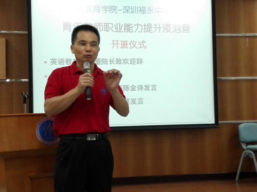 8月21至24日,由威尼斯官网主办的“深圳市福永中学青年教师职业能力提升浸泡营”在广外北校区MBA中心如期举行。此次培训为期四天,为福永中学约40名青年教师十天岗前培训的压轴之旅。此次培训旨在更新中学教师的教育观念、改进教学手段和教学方法,提高教学能力,增强职业发展能力,不断拓宽教育国际化视野,使教师的综合素质逐步适应课程改革的需要,大力促进基础教育改革的深化。1929cc威尼斯和深圳福永中学的相关领导参加了此次培训。