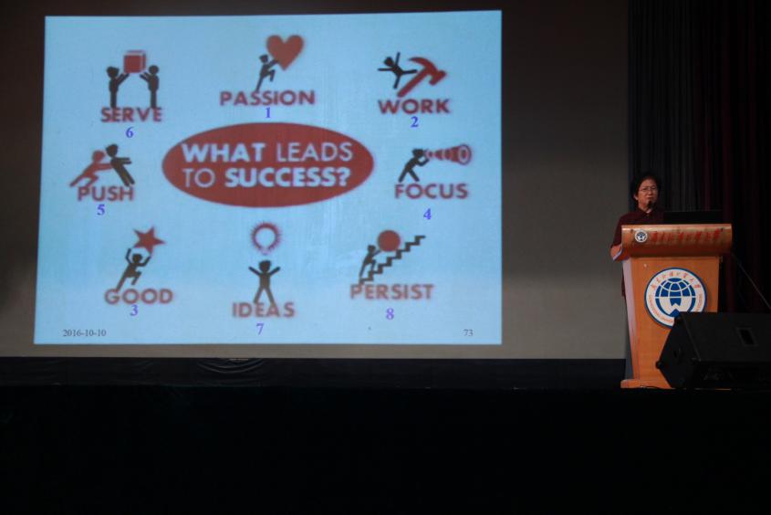 讲座最后,王桂珍重提通往成功的8把金钥匙,并表达了对同学们努力学习的深切期望,送上了她对同学们美好的祝愿。